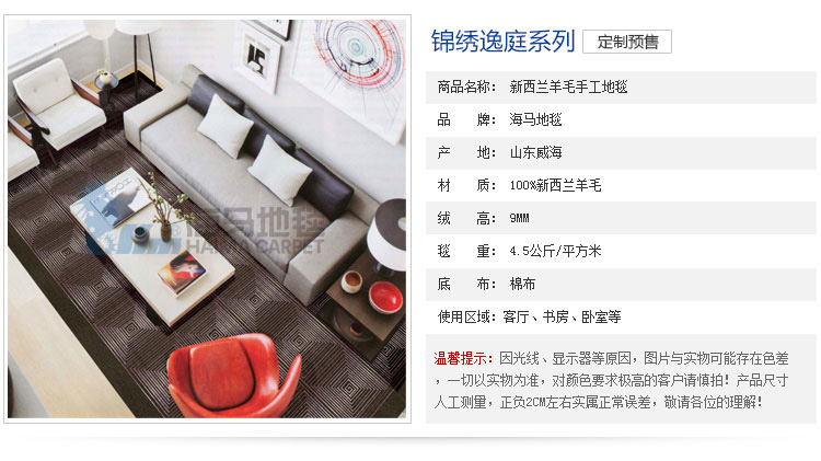 海馬絨毯ニュージーランドウール手製絨毯客間茶卓絨毯HM-1055カスタム前売2.4 M*3.4 M【写真価格ブランド見積】-京東